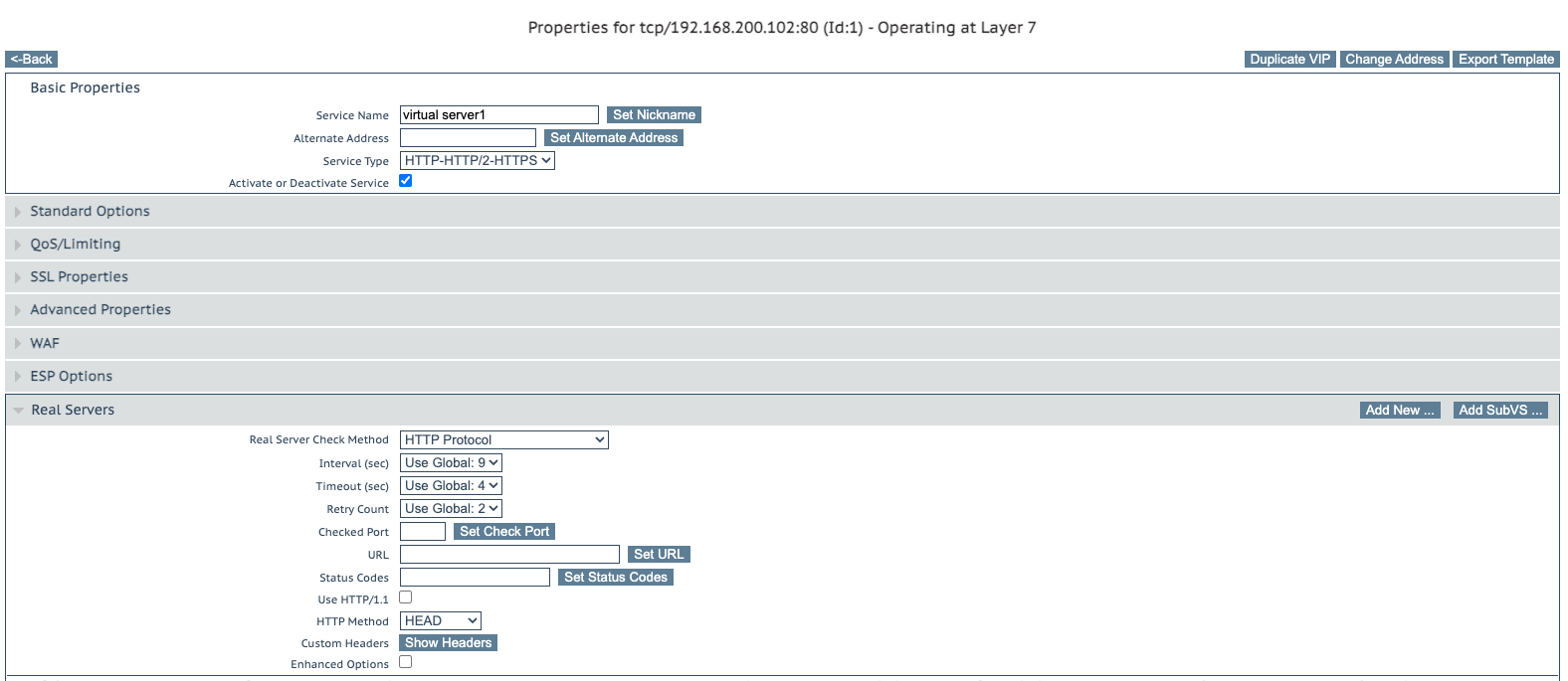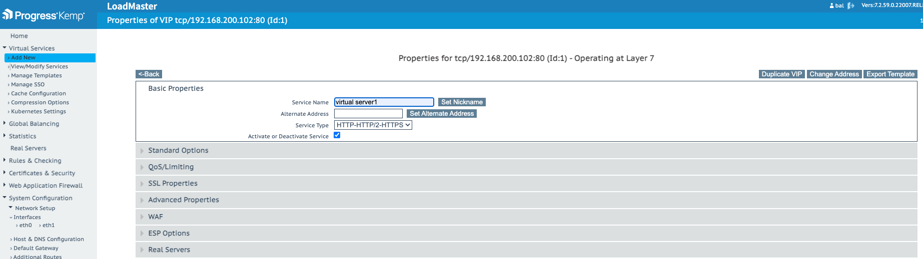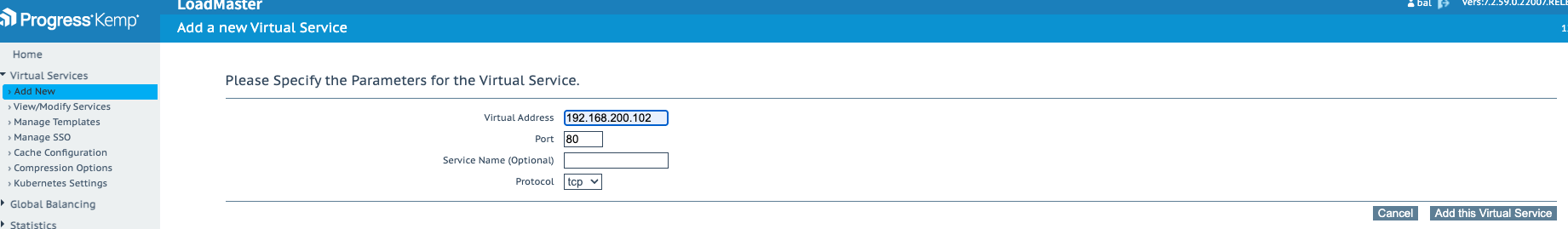 `https://<LoadMaster-IP>' - Go to Virtual Services → Add New